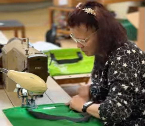 Wir haben die Herstellung der Recycling-Taschen für den Kunden Buss Ports Logistics mit dem Foto festgehalten.